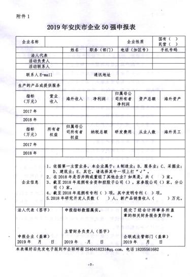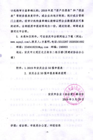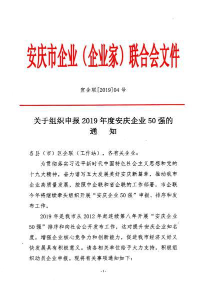 關(guān)于組織申報2019年度安慶企業(yè)50強的通知